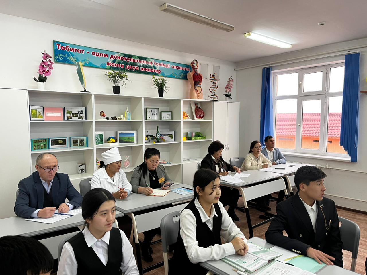 Сабаққа мектеп медбикесі Кенжебай Айгүл қатысып, қартаю кезеңіндегі ағзаның физиологиялық өзгерістері туралы өз ойын ортаға салса,
