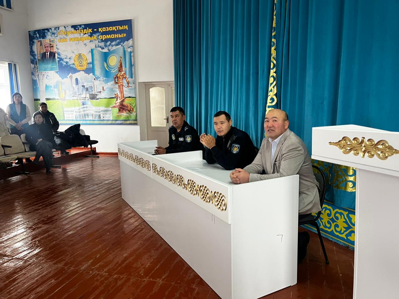 Жиналысқа Отырар АПБ ЖПҚ ЮПТ-ның полиция майоры Бимен Махсат Төлепбергенұлы, Отырар АПБ ЖПҚ ЮПТ-ның инспекторы полиция лейтенанты Сержан Мерей Сержанұлы, МДТІЖО А.Айшыкова, әлеуметтік педагог М.Қалмырза, мектеп медбикесі А.Кенжебай, сынып жетекшілері, пән мұғалімдері, 9-11сынып оқушылары қатысты.