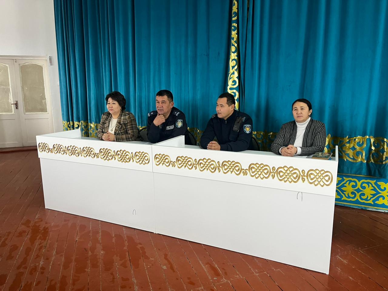 Күн тәртібіндегі мәселе бойынша Отырар АПБ ЖПҚ ЮПТ-ның полиция майоры Бимен Махсат Төлепбергенұлы құқық бұзушылық профилактикасы бойынша түсіндіре отырып, заң талаптарын бұзбай орындау қажеттігі жайында баяндады. Отырар АПБ ЖПҚ ЮПТ-ның инспекторы полиция лейтенанты Сержан Мерей Сержанұлы интернет алаяқтық, лудомания секілді интернет ойынға құмарлығын арттыратын жат қылықтардан аулақ болуға, ұялы телефондарды абайлап қолдану керектігі жайында түсіндірді.Мектеп директоры Ділдабай Ләззат Ермаханқызы құқық бұзушылықтың алдын алу және оған қарсы іс-әрекет жөніндегі жұмыстарды жүргізу мақсатында мектепте біршама жұмыстар атқарылып жатқандығын, кешкі кезекшіліктің тұрақты жүргізілетіндігін айта келе оқушылардың жолда жүру ережелерін қатаң сақтау қажеттігін ескертті. Сонымен қатар оқушыларға мектепке келу, мектептен қайту кезінде жол қауіпсіздігін қатаң сақтау керектігін, кешкі мезгілде көшеде жүрмеу жайында түсіндіріп, жиналысты қорытындылады.