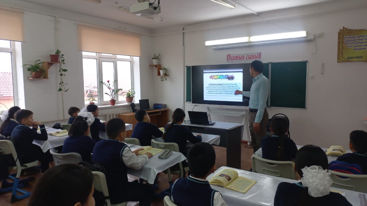 Қ.Сәтбаев атындағы жалпы білім беретін мектебінде "Ұлағат" пәндік әдіс бірлестігінің "Тіл арқылы әлемді танимыз" тақырыбындағы онкүндіктің жұмыс жоспарына сай 4 желтоқсан күні Қоштай Алмат музыка пәнінен "Рок жанрында жазылған әндер" тақырыбында ашық сабақ өтті. Сабақ барысында ЖИ элементтері пайдаланылды.