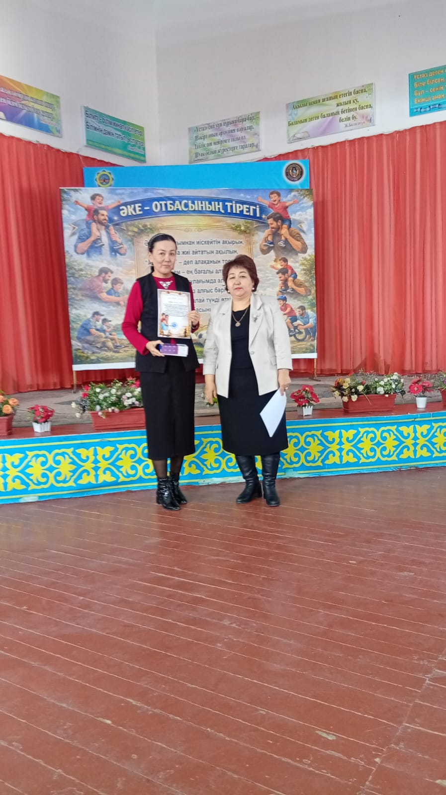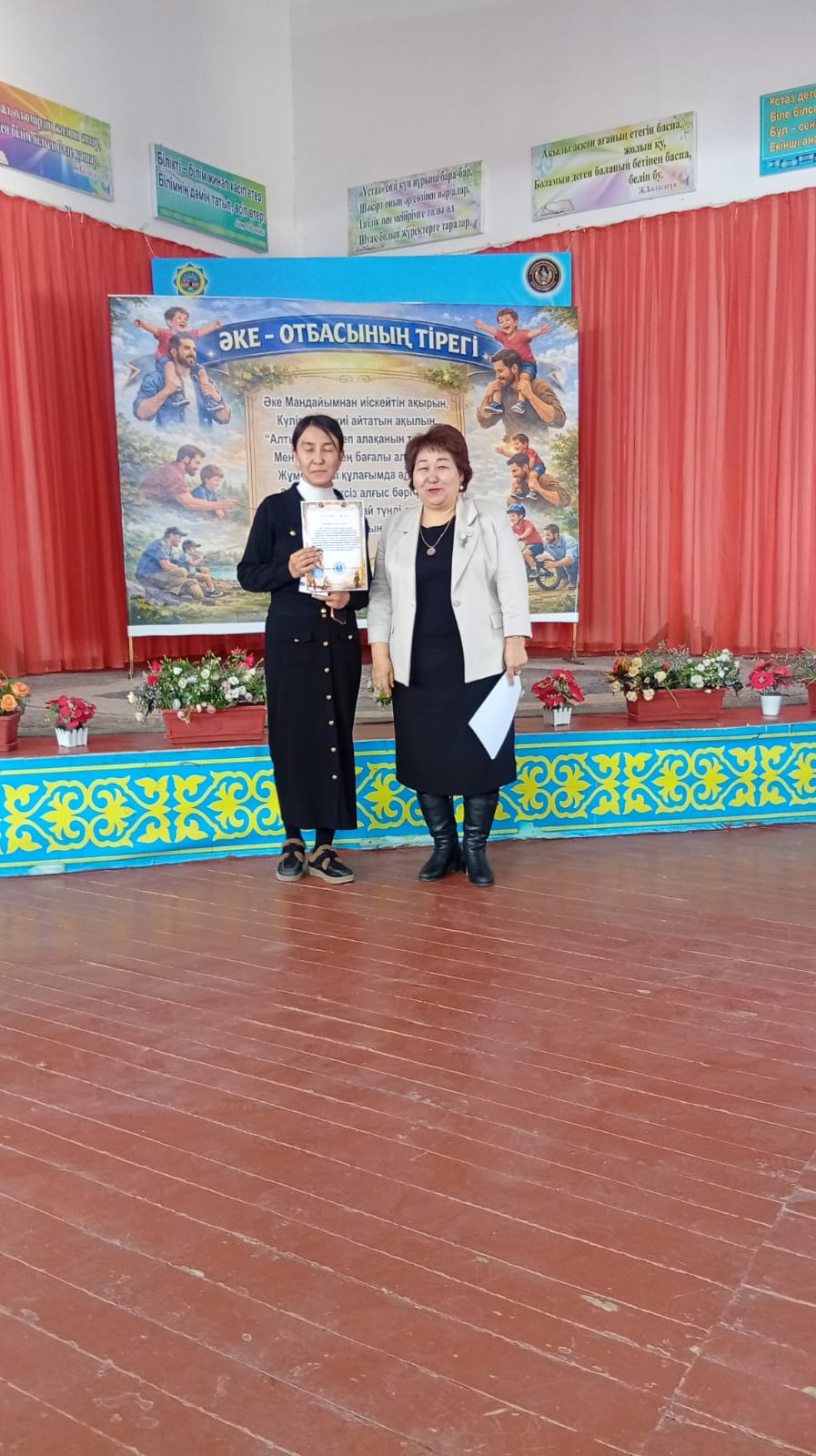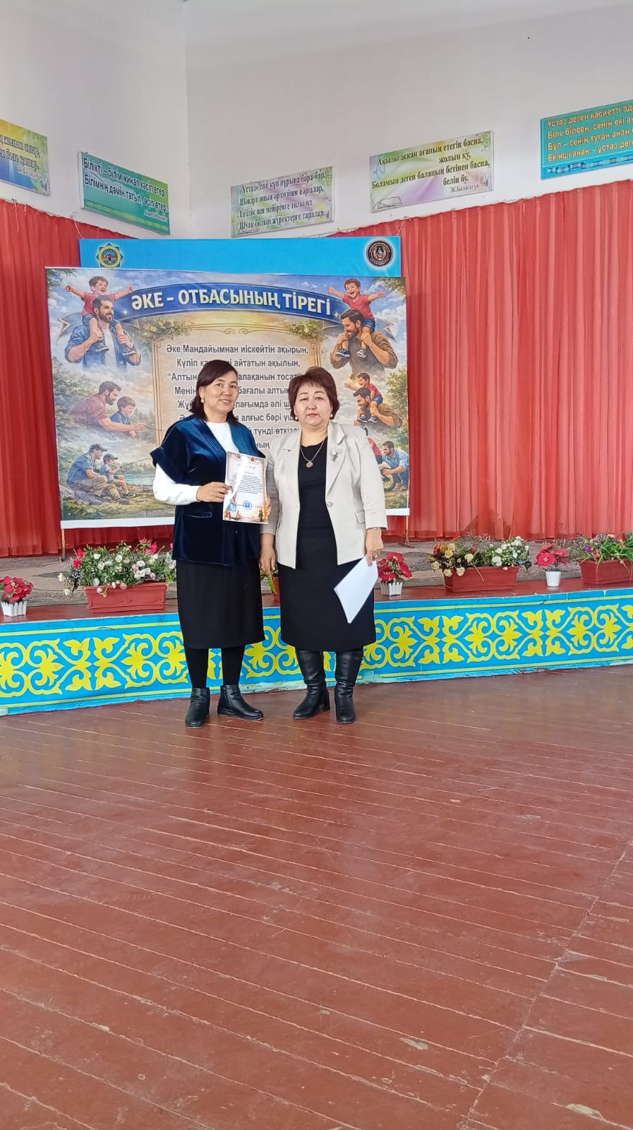 Жабылу салтанатында мектеп директоры Ділдабай Ләззат Ермаханқызы белсенді қатысқан оқушылар мен сынып жетекшілерді марапаттап, алғыс хаттар табыстады. Шара барысында әкеге деген құрмет, отбасының берекесі мен тәрбиедегі әкенің рөлі ерекше аталып өтті.