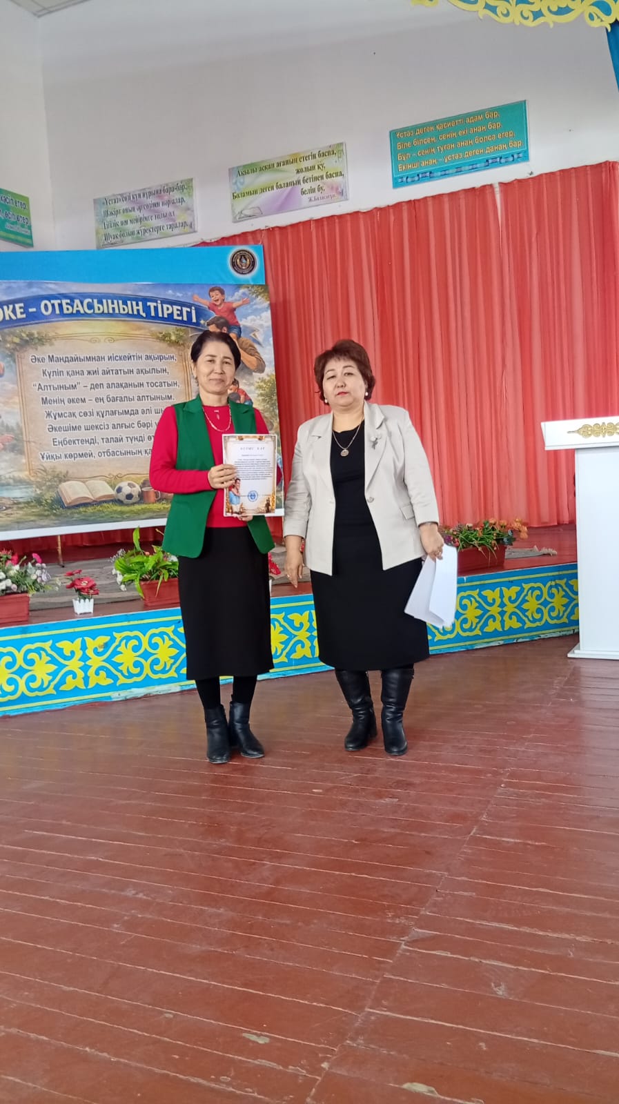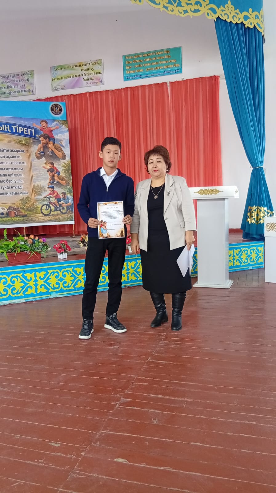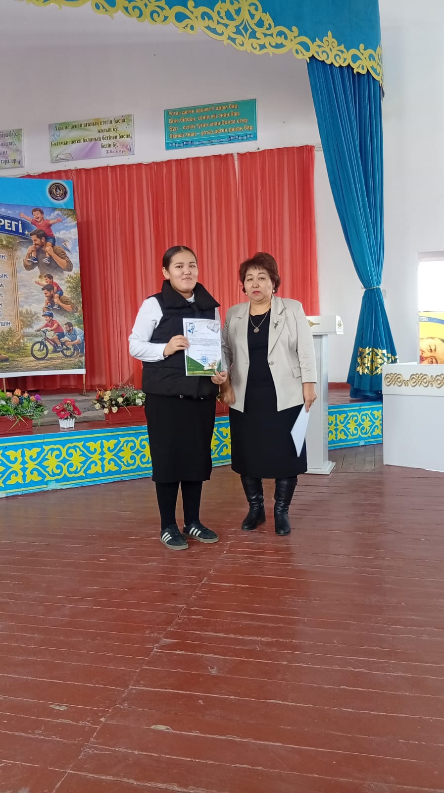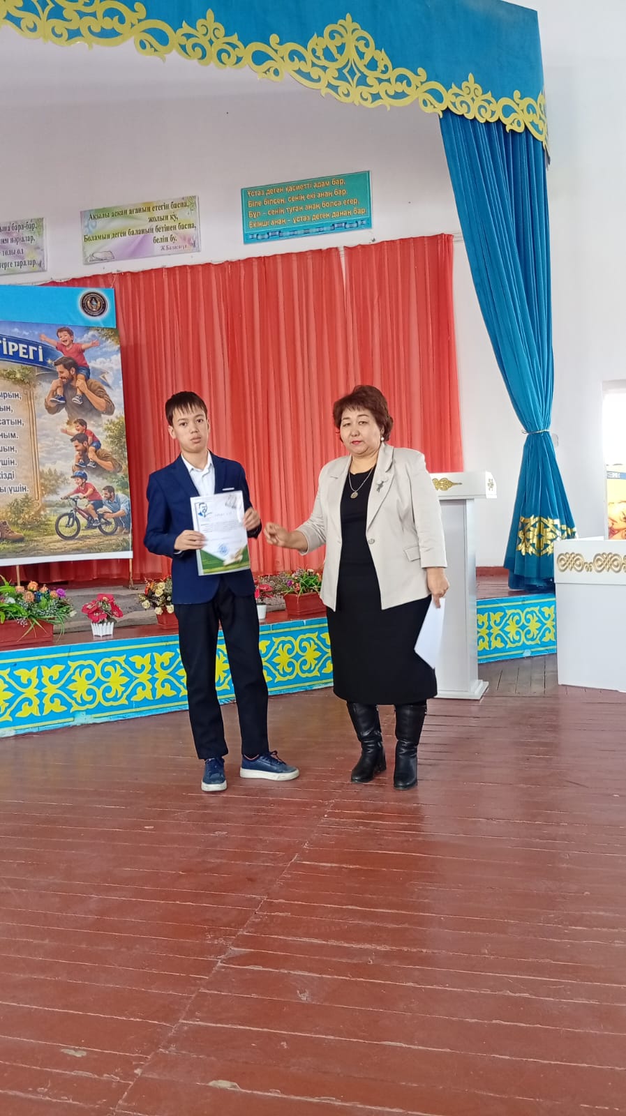 Жабылу салтанатында мектеп директоры Ділдабай Ләззат Ермаханқызы белсенді қатысқан оқушылар мен сынып жетекшілерді марапаттап, алғыс хаттар табыстады. Шара барысында әкеге деген құрмет, отбасының берекесі мен тәрбиедегі әкенің рөлі ерекше аталып өтті.