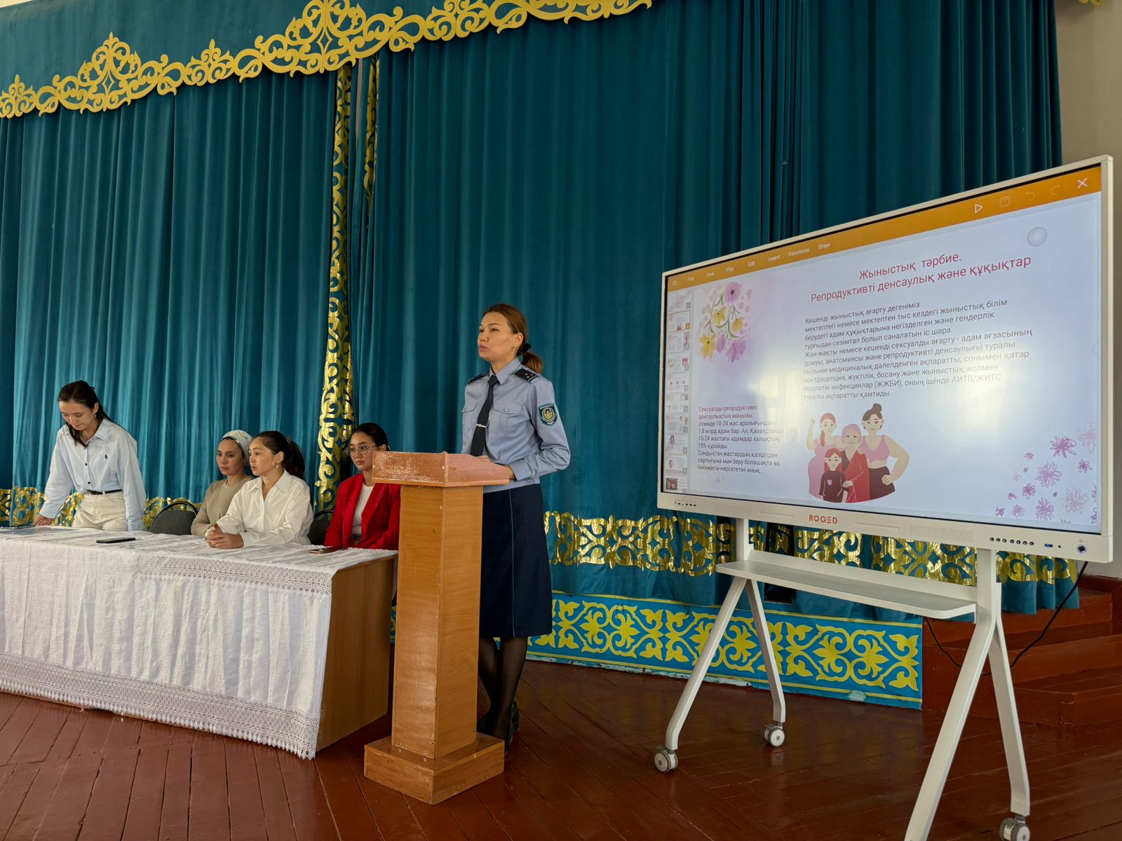 Семинарға Отырар АПБ ЖПҚб ОТЗЗҚКТ аға инспекторы полиция аға лейтенанты З.Надирова, Отырар аудандық ауруханасының акушер гинекологы Л.Қоңырбаева, Отырар аудандық Жастар ресурстық орталығының психологы Маханбетжан Әдемі, мектептегі әйел азаматтар мен 7-11 сыныптың оқушы қыздары қатысты.