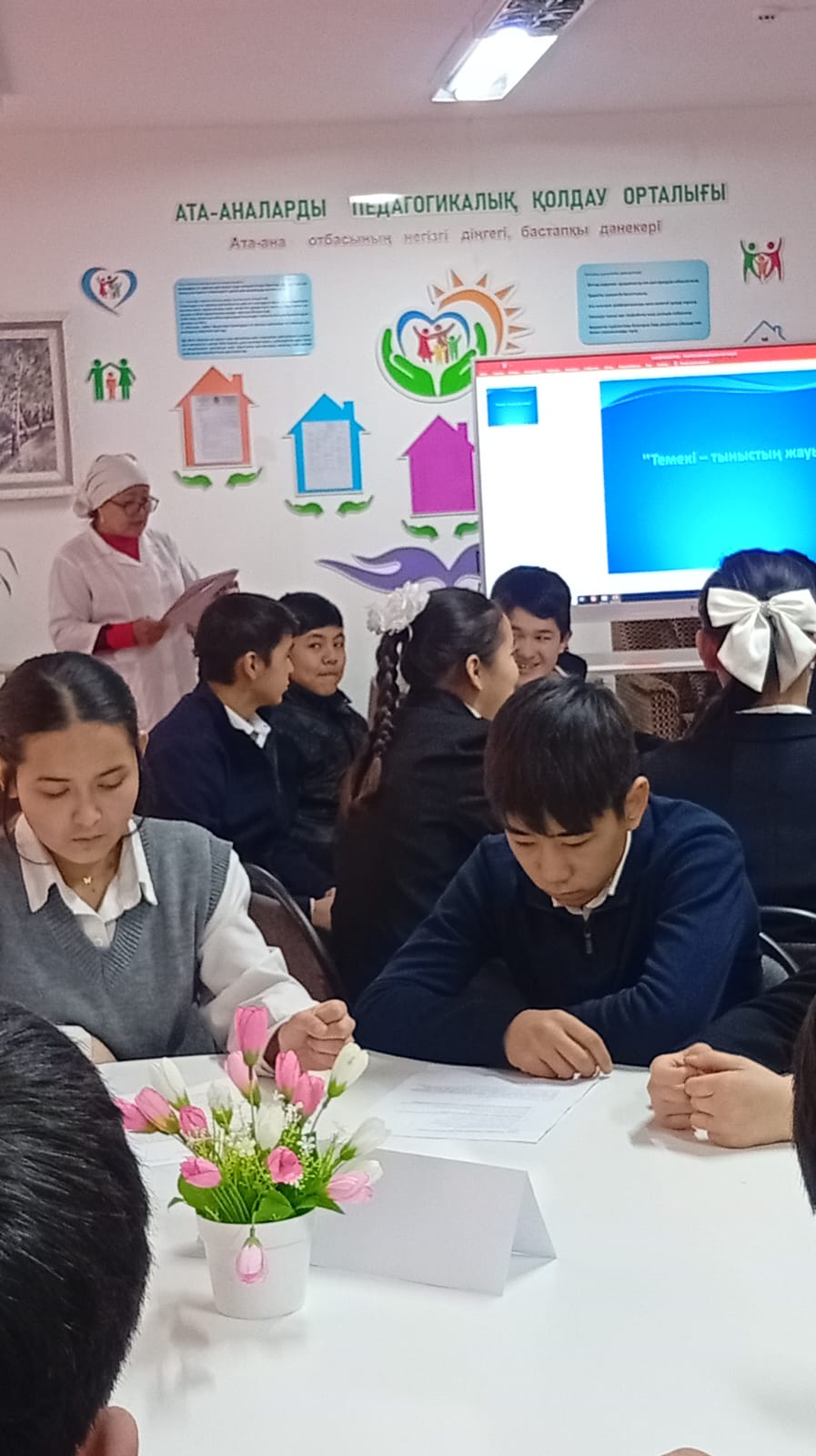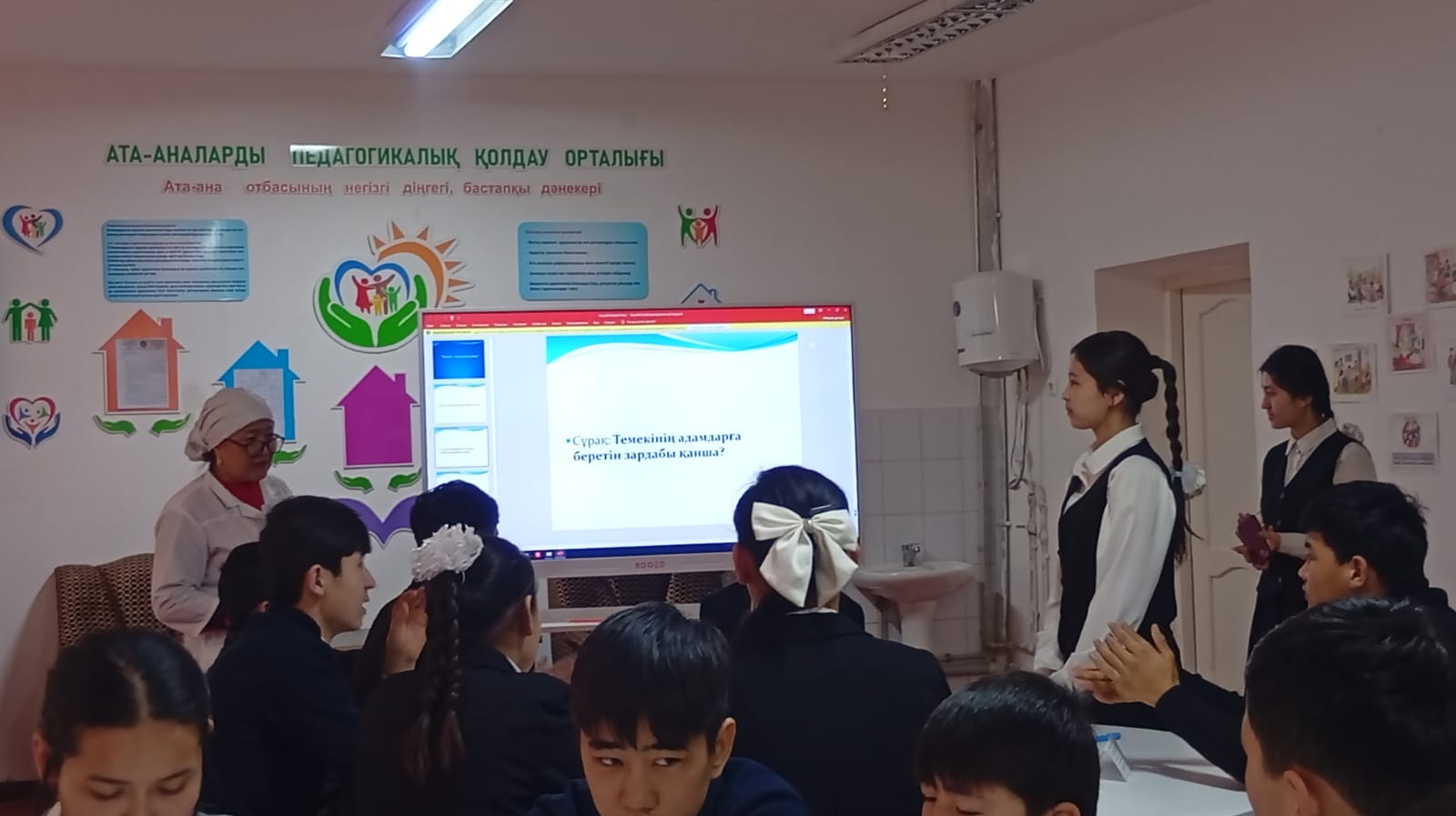 Оқушыларға салауатты өмір салтын ұстанудың маңыздылығы, зиянды әдеттерден аулақ болудың жолдары түсіндіріліп, тақырыпқа байланысты сұрақ-жауап жүргізілді. Іс-шара оқушылардың қызығушылығын арттырып, темекінің зияны туралы түсініктерін кеңейтті.