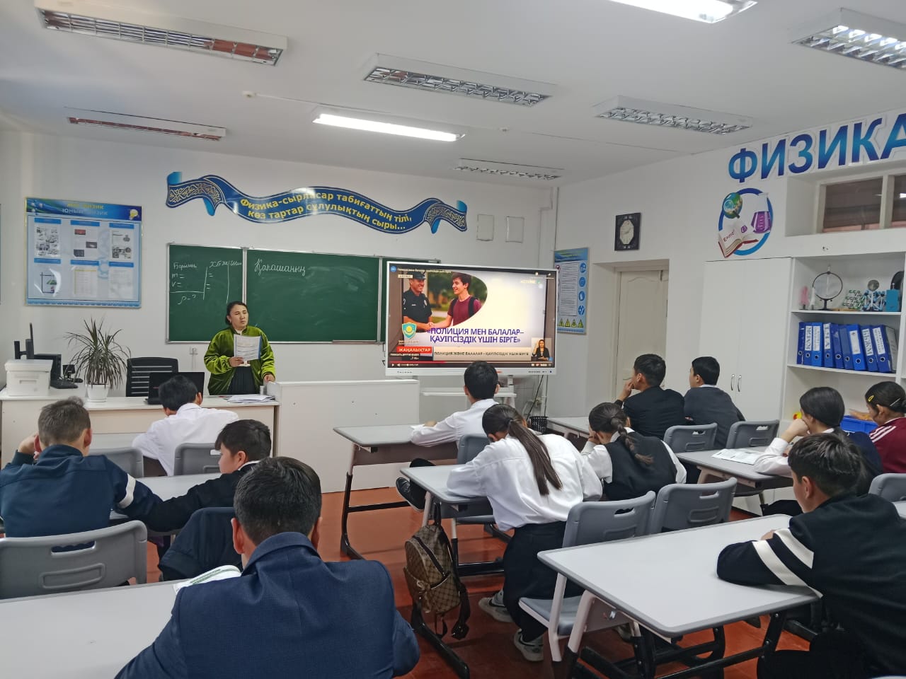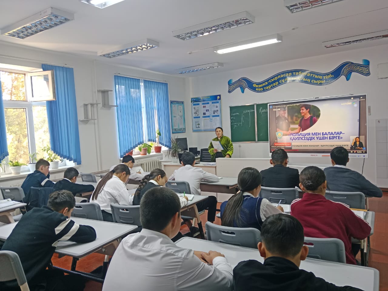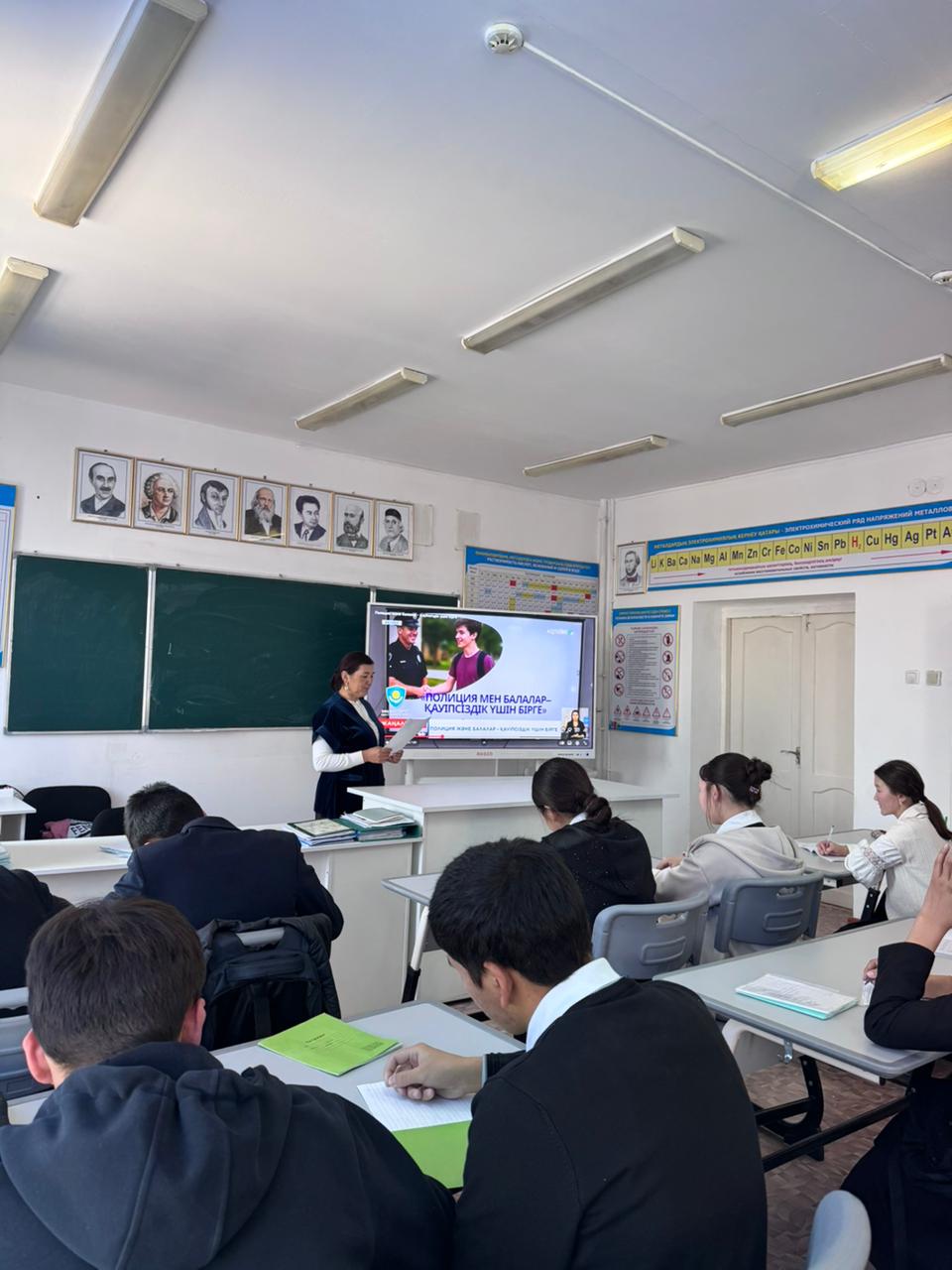 Мақсаты - оқушыларға құқықтық мәдениетті, қауіпсіздік қағидаларын насихаттау, заңға деген құрмет пен жауапкершілік сезімін қалыптастыру.